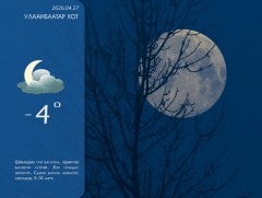 ЦАГ АГААР: Улаанбаатарт шөнөдөө 4 хэм дулаан