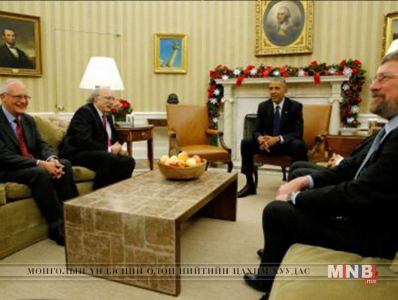 Өнгөрөгч лхагва гарагт АНУ-ын Ерөнхийлөгч Барак Обама 2016 оны Нобелийн шагналтнуудыг хүлээн авч уулзжээ. Ерөнхийлөгч Обама 2016 оны Физикийн Нобелийн шагналт Принстон их сургуулийн эрдэмтэн Данкан Халдейн, Брауны их сургуулийн эрдэмтэн Майкл Костерлиц, эдийн засгийн шинжлэх ухааны шагналтан эрдэмтэн Оливер Хаарт, химийн шинжлэх ухааны нобелийн шагналтан АНУ-ын Нортвестерн их сургуулийн эрдэмтэн Фрейзер Стоддарт нарыг "Цагаан ордон"-д хүлээн авч уулзлаа.