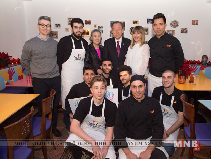 НҮБ-ын Ерөнхий нарийн бичгийн дарга Пан Ги Мун Австрийн Вена хотын нэгэн ресторанд дүрвэгч, цагаач иргэдтэй уулзалт хийжээ. Пан Ги Мун гэргий Ю Сун Текийн хамт Австрийн Вена хотод айлчилж байна.