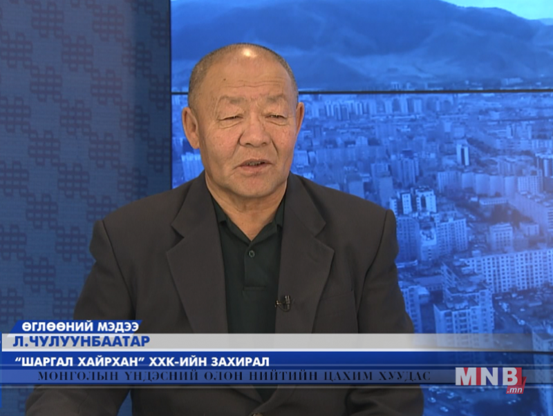 МҮОНРТ-ийн "Монголын мэдээ" сувгийн "Өглөөний мэдээ"-ийн зочин. "Шаргал хайрхан" ХХК-ийн захирал Л.Чулуунбаатар оролцлоо.