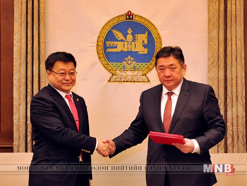 УИХ-ын дарга Миеэгомбын Энхболдод өнөөдөр /2016.12.27/ Засгийн газрын гишүүн, Зам, тээврийн хөгжлийн сайд Д.Ганбат “Төрөөс төмөр замын тээврийн талаар баримтлах бодлогын хэрэгжилтийг хангах тухай” болон “Төрийн өмчөөс хувьчилж үл болох эд хөрөнгийн жагсаалт батлах тухай тогтоолын хавсралтад нэмэлт оруулах тухай” Улсын Их Хурлын тогтоолын төслүүдийг өргөн мэдүүллээ.