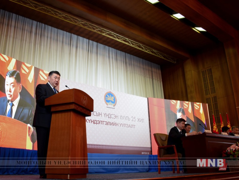 Монгол Улсын Үндсэн хууль батлагдсаны 25 жилийн ойн хүндэтгэлийн уулзалт өнөөдөр /2017.01.13/ Төрийн ордны Их танхимд боллоо. Үндсэн хуулийн батлалцаж явсан Ардын Их Хурлын депутатууд, Улсын Бага Хурлын гишүүд өнөөдрийн хүндэтгэлийн уулзалтад хүрэлцэх ирсэн бөгөөд Улсын Их Хурлын дарга М.Энхболд оролцож, үг хэллээ.