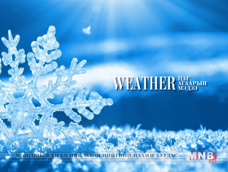 ТӨВИЙН АЙМГУУДЫН НУТГААР: Солигдмол үүлтэй. Цас орохгүй. Салхи баруун хойноос секундэд 5-10 метр. Дархадын хотгор, Ерөө, Туул, Тэрэлж голын хөндийгөөр шөнөдөө 36-41 хэм, өдөртөө 22-27 хэм, Хөвсгөл, Хэнтэйн уулархаг нутаг, Орхон-Сэлэнгэ, Эг, Хараа голын хөндийгөөр шөнөдөө 33-38 хэм, өдөртөө 17-22 хэм, бусад нутгаар шөнөдөө 24-29 хэм, өдөртөө 10-15 хэм хүйтэн байна.