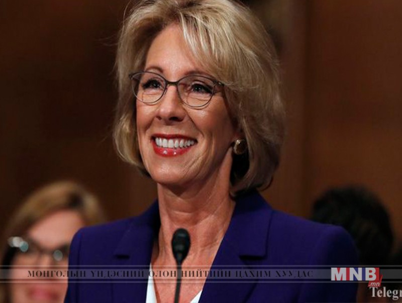 АНУ-ын Боловсролын сайд Бетси Девос тангараг өргөж, үүрэгт ажилдаа ороод байна. АНУ-ын Ерөнхийлөгч Дональд Трамп түүний нэрийг Боловсролын сайдад дэвшүүлсэн бөгөөд өчигдөр Сенатад санал хураалт нь болсон юм.