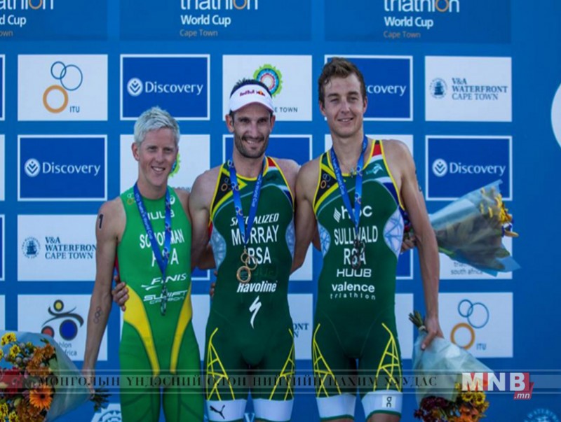 Олон улсын триатлоны холбооны дэлхийн цомын аварга шалгаруулах тэмцээн анх удаа ӨАБНУ-ын Кэйп Таун хотод зохион байгуулагдаж, шилдгүүдээ тодруулсан байна. Энэ удаагийн дэлхийн цомын АШТ-д эрэгтэйчүүдээс дэлхийн шилдэг 35 тамирчин гараанаас гаран урлдсанаас тэмцээнийг зохион байгуулагч орон ӨАБНУ-ын тамирчид нь шилдэг нь байлаа. 28 настай Ричард Мюррэй 51 минут 33 секундын хугацаанд нийт замыг туулж, барианы зурвасд ирсэн бол түүний нутаг нэгт тамирчин Хенри Шоемэн, Виан Суллволд нар удаах байруудыг эзэлжээ. Ийнхүү ӨАБНУ-ын 3 триатлонч хамтдаа шагналын тавцанд гарч, алт мөнгө хүрэл медалийн эзэд болжээ.