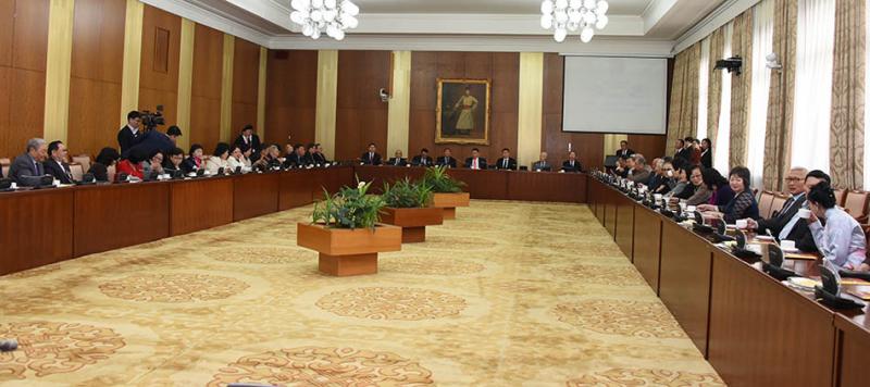 Хүндэтгэлийн уулзалтад Улсын Их Хурлын Тамгын газрын Ерөнхий нарийн бичгийн дарга Ц.Цолмон, Хууль, эрх зүйн асуудал хариуцсан нарийн бичгийн дарга Д.Амгалан, Захиргаа, аж ахуйн асуудал хариуцсан нарийн бичгийн дарга П.Цэрэн болон албаны бусад хүмүүс оролцсон юм. Уулзалтын төгсгөлд ахмадууд Улсын Их Хурлын дарга М.Энхболд болон Улсын Их Хурлын Тамгын газрын удирдлагуудын хамтаар дурсгалын зураг авахууллаа.