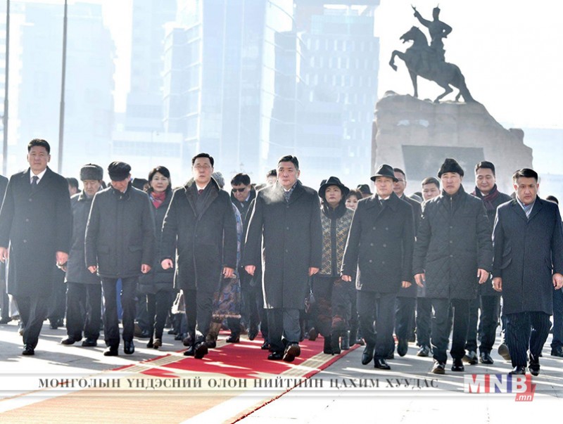 Монгол Улсын УИХ-ын дарга М.Энхболд, Ерөнхий сайд Ж.Эрдэнэбат болон УИХ-ын гишүүд, Засгийн газрын гишүүд, ахмад настнууд ард иргэдийн төлөөлөл Жанжин Сүхбаатарын хөшөө, Чингисийн хөшөөнд тус тус хүндэтгэл үзүүлж, хүндэт харуул жагслаа.