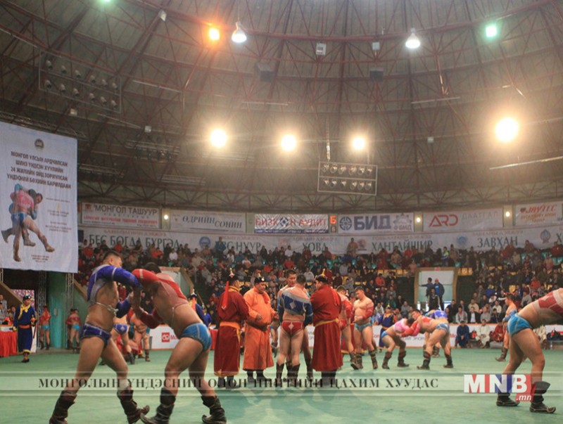 Монгол түмний уламжлалт сар шинийн баярт зориулсан хүчит бөхийн барилдаан үргэлжилж байна.