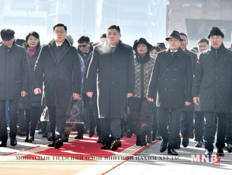 Монгол улсын УИХ-ын дарга М.Энхболд, Ерөнхий сайд Ж.Эрдэнэбат болон УИХ-ын гишүүд, Засгийн газрын гишүүд, ахмад настнууд ард иргэдийн төлөөлөл Жанжин Сүхбаатарын хөшөө, Чингисийн хөшөөнд тус тус хүндэтгэл үзүүлж, хүндэт харуул жагслаа.