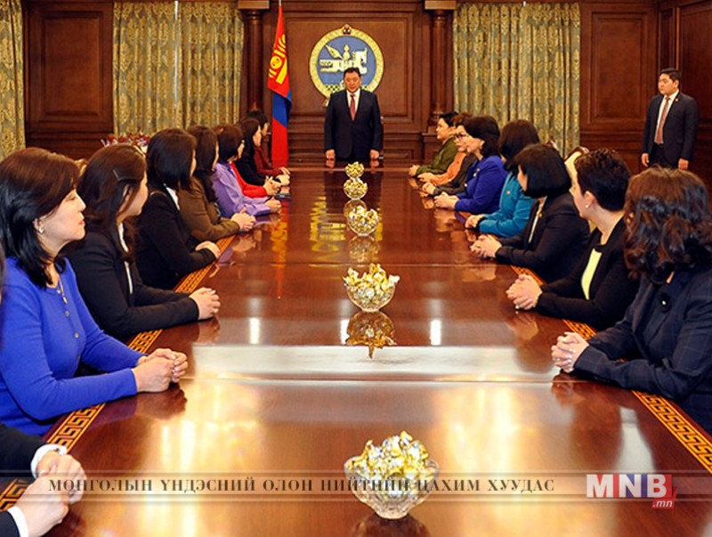 Монгол Улсын Их Хурлын дарга М.Энхболд Олон улсын эмэгтэйчүүдийн өдрийг тохиолдуулан төр, засгийн өндөр албан тушаал хашиж байгаа эмэгтэйчүүдийн төлөөллийг хүлээн авч, баяр хүргэв.