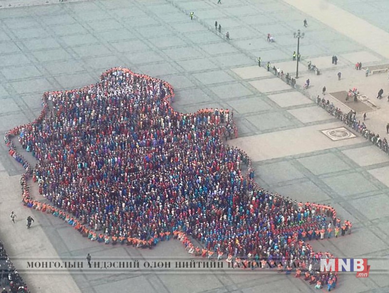 Тэд Монгол Улсын газрын зураг хэлбэртэй болон жагсаж, үндэсний хувцсаараа гоёжээ.