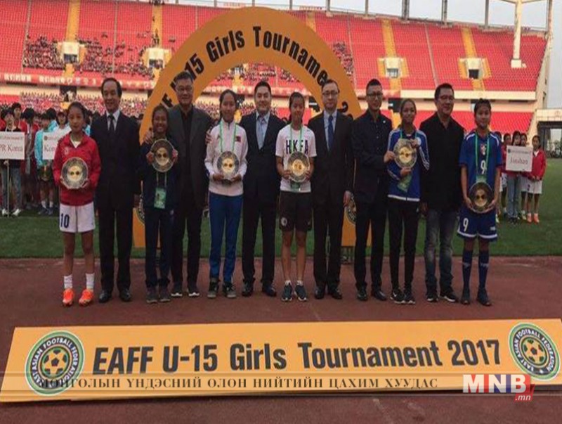 Монголын охидын шигшээ багийн оролцсон зүүн Азийн 15 хүртэлх насны охидын аварга шалгаруулах тэмцээний шилдэг хаалгачийн шагналыг Монголын шигшээ багийн хаалгач У.Болортуяа хүртэв.