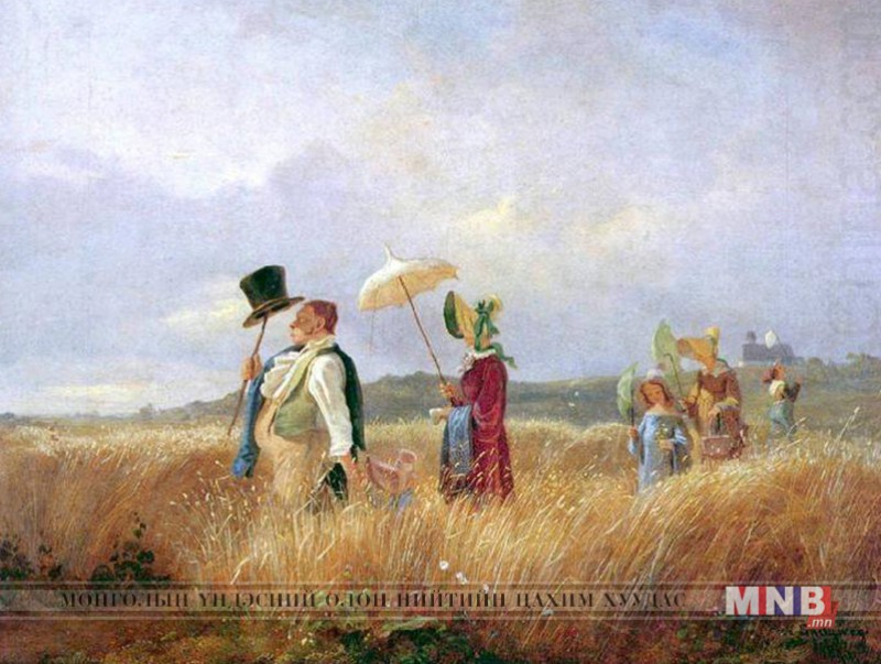 Карл Шпицвег бага насандаа уран зурагт төдийлэн шимтдэггүй хүүхэд байжээ. Тэрээр Мюнхэний их сургуулийг эм зүйч мэргэжлээр төгссөнийхээ дараа хүндээр өвдсөн хэдий ч бүрэн эдгэрээд зогсохгүй, урлагт хайртай, уран зурагт сонирхолтой нэгэн болж өөрчлөгдсөн юм. Карл эхэндээ алдартай зураачдын бүтээлийг дууриан зурдаг байв. Түүний бүтээлүүд тухайн үеийн шог, хошин сэтгүүлүүд дээр нийтлэгдсэнээр нэр алдар нь олонд түгэх эхлэл нь болсон гэж үздэг. Тэрээр амьдралынхаа туршид нэгэн буйдхан хотхоны дээврийн хөндийн өрөөнд цор ганцаараа амьдарсан байна. Гэрт нь зочилсон анхны зочин болох Австри гаралтай зураач Мориц Швайнд өөрийн мэргэжил нэгт нөхрийг тэр жижигхэн өрөөндөө үргэлж бясалгаж, бүрэн төвлөрдөг байсан гэжээ. Эрвээхэй ангуучлагч хэмээх энэ зургийг Карл 1840 онд зурсан юм. Аварга том хоёр эрвээхэйн зүг нарийнхан тороо барьсаар зоригтой нь аргагүй алхлах байгаль судлаачийн нүдний шилэн дээр гэрэл ойж харагдана. Зураач энэ зурагтаа байгалийн дүр төрхийг нарийвчлан буулгаж, өнгө будгийн зохицлыг гайхалтай илэрхийлж чаджээ. Үүгээрээ ч тэрээр бүх цаг үеийн алдартай зураачид дотроос бодит байдал, чамин тансгийг хослуулж, шог хошин аясаар хөг нэмж чаддаг, сод уран зураач үнэлэгддэг юм. Тэрээр Лондон, Праг, Венец, Парис гээд Европ дахь урлагийн төв болсон бүхий л газруудаар аялжээ. Ингэхдээ тухайн цаг үеийн уран зургийн төлөөлөл болсон хүмүүстэй уулзаж, туршлага солилцон, улам ихийг таньж мэдэхэд шамддаг байлаа. Карл Шпицвег амьдралынхаа сүүлийн он жилүүдийг шог, хошин аястай уран зургууддаа зориулсан гэж хэлж болно. “Ням гаригийн алхалт” хэмээх энэ зургийг тэрээр 1841 онд зуржээ. Тариан талбайн дундуур сүм рүү алхаж яваа гэр бүлийн гишүүн бүр өөрийн өвөрмөц дүр байдлыг гаргасан нь энэ зургийг хошин өнгө аястай болгожээ. Зураачийн шог, хошин мэдрэмж, өнгө будгийн зохицолтой хосолсноор энэ бүтээлийг олонд алдаршуулж, үе үеийн урлагийн төлөөллүүд иш, жишээ болгон дурсдаг байна.