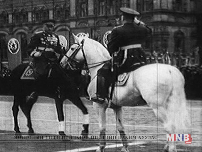 | Ялалтын анхны парадын үеэр Маршал Г.К.Жуков араб цусны азарга унаж байжээ | ||