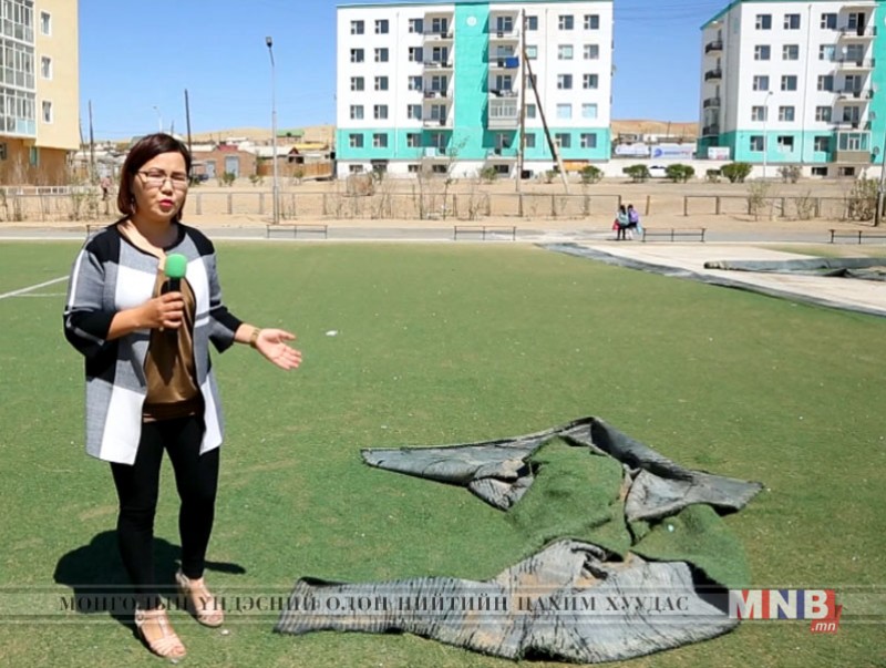 | Орон нутгийн төсвөөр байгуулсан хөлбөмбөгийн талбай салхинд хийслээ | ||