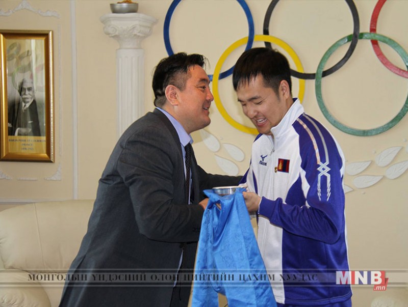 Түүнийг Монголын шатрын холбооны гүйцэтгэх захирал Б.Наранбаатар, дэд ерөнхийлөгч, Монгол Улсын гавьяат дасгалжуулагч П.Жигжидсүрэн, МҮОХ-ны дэд ерөнхийлөгч Ц.Дамдин нар өчигдөр МҮОХ-ны ёслолын танхимд хүлээн авч, хүндэтгэл үзүүллээ.