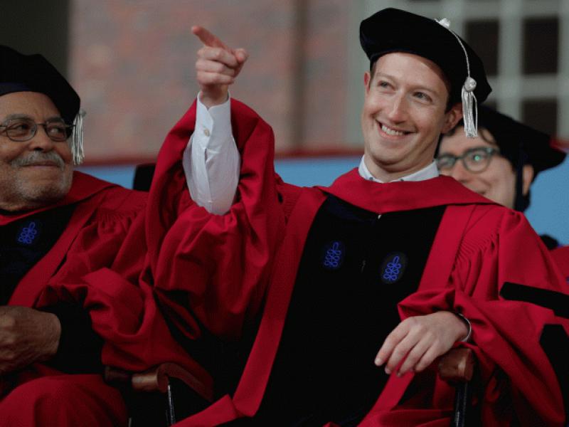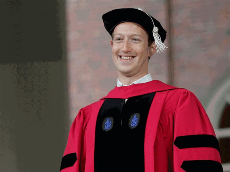 Фейсбүүк цахим хуудсыг үндэслэгч "Марк Цукерберг" 12 жилийн дараа Харвардын Их сургуулийг төгслөө. Тэрээр хуулийн чиглэлээр докторын зэрэг авчээ. Анх 2002 онд Харвардын их сургуульд элсэн орж сэтгэл зүй болон компьютерийн ухааны чиглэлээр сурч байсан боловч фейсбүүк цахим сүлжээнд анхаарлаа хандуулан ажилсны улмаас сургуулиа орхиход хүрч байжээ. Тэрээр энэ баяртай мэдээгээ өөрийн Инстаграмм цахим хуудсанд нийтэлсэн байна. Ингэхдээ Марк Цукерберг, ээжээ би заавал харвардын их сургуульдаа эргэн сурж, дээд боловсрол эзэмшин төгсөнө гэж үргэлж хэлдэг байсан биздээ, хэмээн онцолжээ.