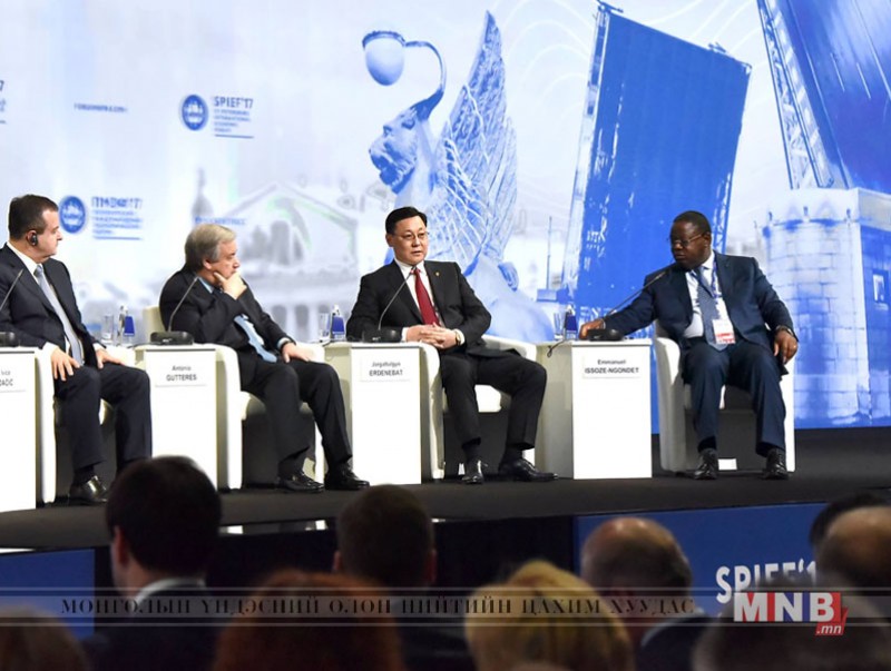 2017 оны зургадугаар сарын 1,2-ны өдрүүдэд ОХУ-ын Санкт-Петербург хотноо болж буй Олон Улсын эдийн засгийн чуулга уулзалтад Монгол Улсын Ерөнхий сайд Ж.Эрдэнэбат тэргүүтэй албаны бусад хүмүүс оролцож байна. Петербургийн Олон Улсын эдийн засгийн чуулга уулзалт нь ОХУ, хөгжиж буй шинэ эдийн засгуудын төр засгийн болон хувийн хэвшлийн төлөөллийг цуглуулж, дэлхийн эдийн засгийн өмнө тулгарч буй томоохон эдийн засгийн асуудлуудыг тодорхойлон хэлэлцэх талбар болжээ.