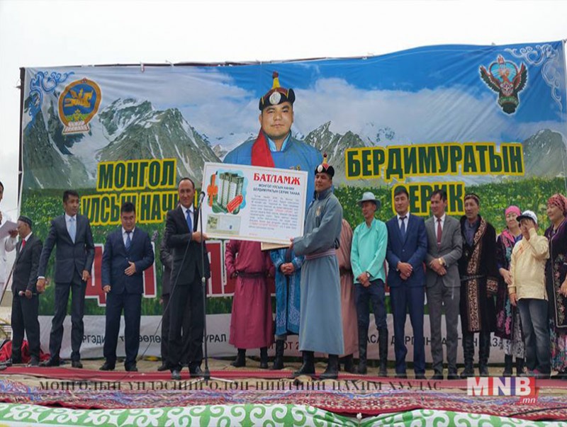 Хоёр өрөө байрны батламж болон мөнгөн шагналыг аймгийн Засаг дарга А.Гылымхан гардуулжээ. Мөн УИХ-ын гишүүн Д.Мурат 15 сая төгрөг, бизнесмен Т.Сырымбек 20 сая төгрөгөөр тус тус шагнасан байна.