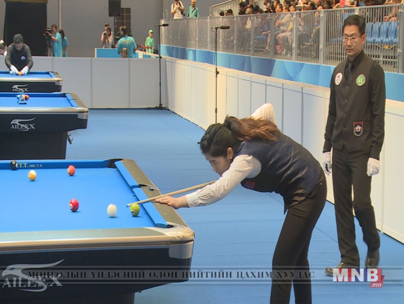 Эмэгтэйчүүдийн ганцаарчилсан төрөлд оролцож байгаа манай улсын 2 дахь тамирчин Б.Нарантуяа хагас шигшээд шалгарах эрхийн төлөө БНСУ-ын тамирчин Жанг Ёонтой таарч тоглон 9:3-ын харьцаатай ялсанаар тэмцээний хагас шигшээд шалгарч чадлаа. Тэрээр дараагийн тоглолтоо мөн наадмыг зохион байгуулагч орон Тайваны тамирчин Ву Зи Тинтэй хийх юм.