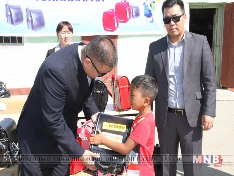 Энэ өдөр Дархан сумын 15 дугаар багийн 40-н хүүхдэд хичээлийн хэрэглэл, цүнх гардуулан өглөө. Энэхүү Япон Монголын Азжаргалын нийгэмлэгт Дархан-Уул аймгийн хэд хэдэн компани хамрагддаг бөгөөд өнөө жил нийтдээ 132 ширхэг цүнхийг зорилтот бүлгийн хүүхэд багачуудад гардуулан өгчээ.