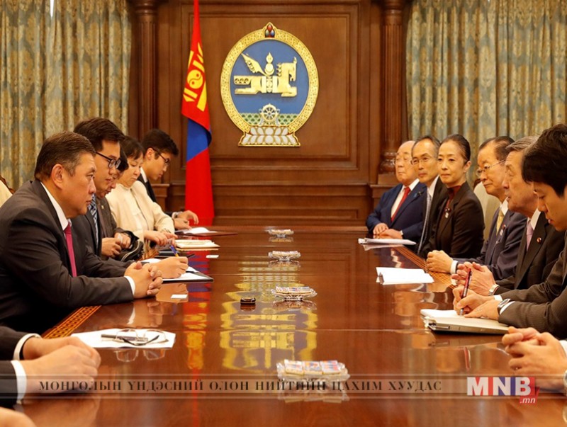 Монгол Улсын Их Хурлын даргад М.Энхболд Япон Улсын Ерөнхий сайд Ш.Абэгийн тусгай элч, Японы парламентын Төлөөлөгчдийн танхим дахь Япон, Монголын найрамдлын бүлгийн дарга Мото-о Хаяаши тэргүүтэй төлөөлөгчдийг хүлээн авч уулзлаа. Монгол, Японы хооронд дипломат харилцаа тогтоосны 45 жилийн ойн хүрээнд болж буй энэхүү айлчлалд Японы талаас М.Хаяаши тэргүүтэй 60 гаруй төлөөлөгчид оролцож байгаа юм.