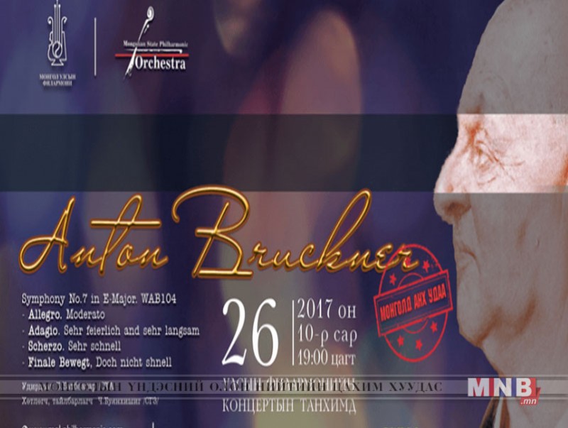 Улсын Филармонийн симфони найрал хөгжим Австрийн нэрт хөгжмийн зохиолч Антон Брукнерийн VII симфонийг өнөөдөр үзэгч, сонсогчдод хүргэнэ.