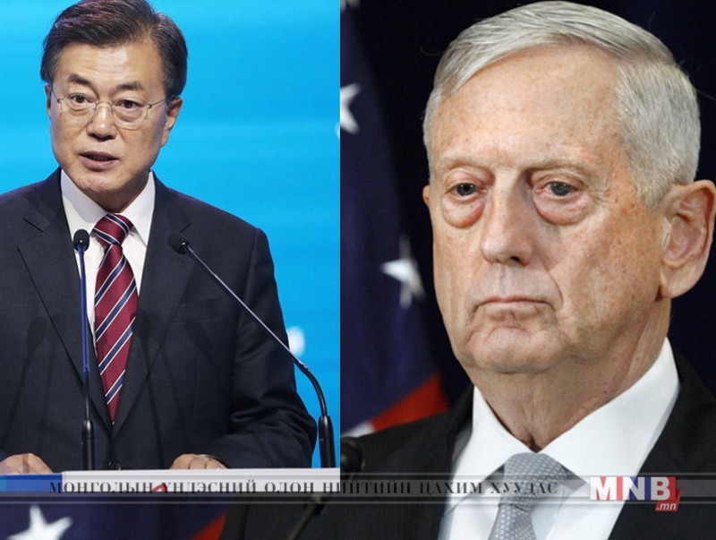 АНУ-ын Батлан хамгаалахын сайд Жеймс Мэттис БНСУ-ын Ерөнхийлөгч Мүн Жэ Интэй уулзаж, Умард Солонгосын асуудлаар ярилцсан байна. Мөн Солонгосын хойгтой холбоотой асуудлыг энхийн замаар шийдвэрлэх нэгдмэл тохиролцоонд хүрчээ.