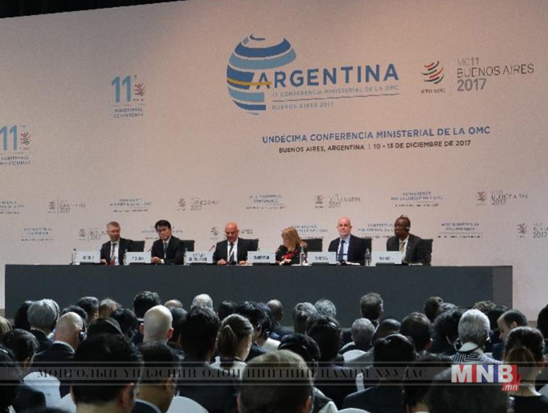 Аргентины нийслэл Буэнос-Аэрос хотноо дэлхийн худалдааны байгууллагын сайд нарын 11 дэх удаагийн бага хурал өнөөдөр эхэлнэ. Энэ удаагийн уулзалтыг зохион байгуулагч орны Ерөнхийлөгч Маурисиом Макри, Бразилийн Ерөнхийлөгч Мишел Темер, Парагвай, Уругвай зэрэг орны төрийн тэргүүн болон дэлхийн өнцөг булан бүрээс ирсэн хэдэн мянган төлөөлөгч энд цуглараад байна.