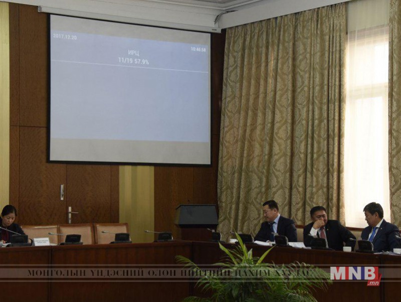 Хуралдааны эхэнд Засгийн газраас 2017 оны 12 дугаар сарын 13-ны өдөр өргөн мэдүүлсэн “Баруун бүсийн эрчим хүчний систем” ТӨХК-ийн ОХУ, БНХАУ-аас худалдан авч буй импортын эрчим хүчийг гаалийн албан татвараас чөлөөлөх тухай хуулийн төслийн үзэл баримтлалын хэлэлцэх эсэхийг хэлэлцсэн.