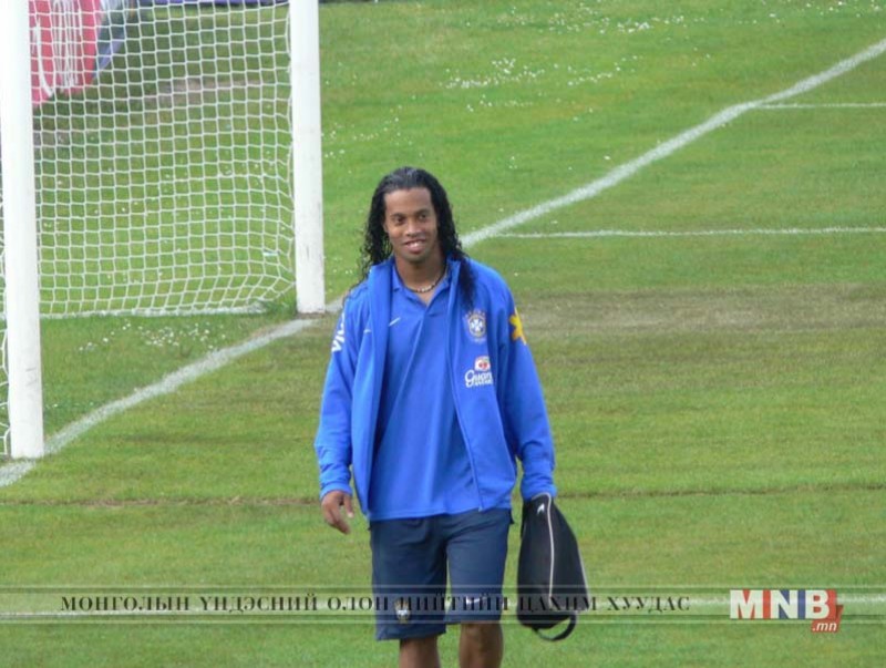 Дараа нь Роналдиньог 2006 оны дэлхийн аваргаар харж билээ. Франкфуртаас холгүй жижигхэн тосгоны цэнгэлдэхэд Бразилын шигшээ бэлтгэлээ нээлттэй хийсэн юм. Нөгөө зургийг нь би бэлтгэл тарахыг хүлээж байгаад их ойрхноос дарсийн, уг нь хамт авахуулна гэж оролдсон ч секюрити оруулаагүй. Нэрийг нь дуудаад л өнгөрч билээ. Мань эр нөгөө л инээдээрээ инээгээд гараа даллаад хажуугаар өнгөрөөд явсаан. Роналдо тэр хоёр, Роберто Карлос, Кафу, Кака, Адриано, Жуниньо, Зе Роберто, Робиньо... Үнэхээр л аймшигтай. Гэхдээ тэднийг Зидан зогсоочихсон.Тоглолтын өмнөх шөнө Роналдиньо плэйстэйшн тоглоод нойр багатай хоносон гэдэг. Энэ дэлхийн аваргаас эхлээд мань эр уруудаад эхэлсэн. Архинд ч орж үзэв. Нэг л сэхсэнгүй явсаар нутаг буцсан.