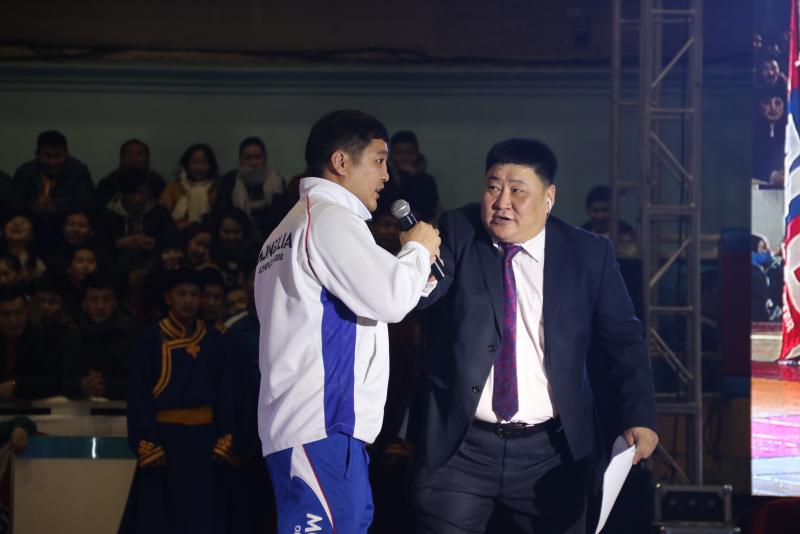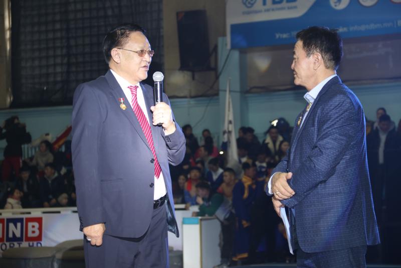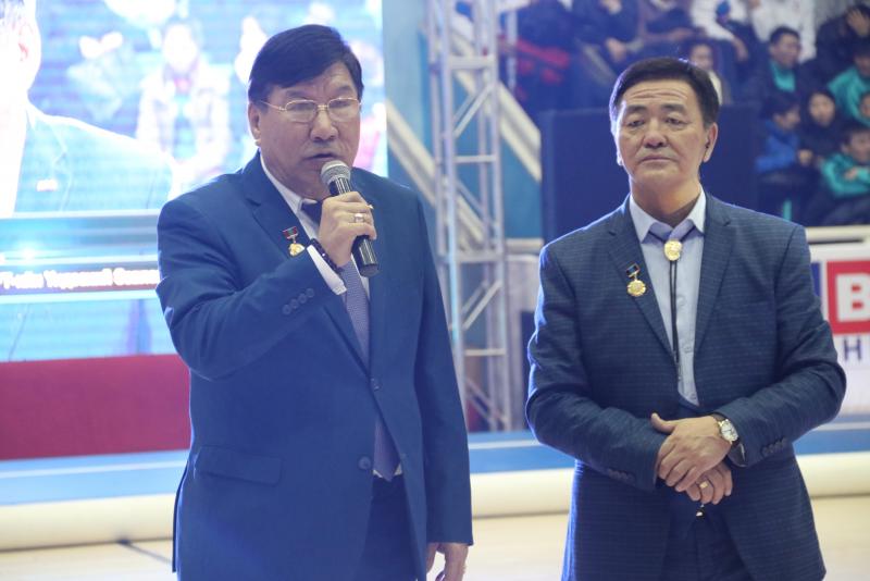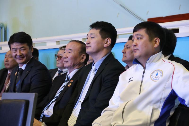 Түүнчлэн Монгол Улсын Хөдөлмөрийн баатар, Гавьяат тамирчин, олимпийн аварга Э.Бадар-Ууган, Монгол Улсын Хөдөлмөрийн баатар, ардын багш Ч.Насантогтох, ардын багш Д.Дамдиншарав, гавьяат тамирчин Д.Отгондалай, гавьяат дасгалжуулагч Д.Батсүрэн нар хүндэтгэлийн суудалд заларсан байв.