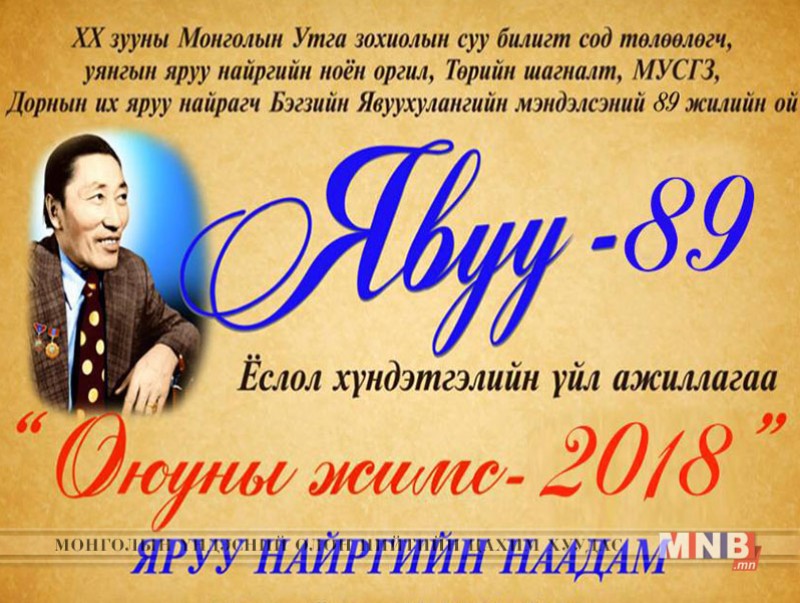 Дорнын их яруу найрагч Б.Явуухулангийн мэндэлсэний 89 жилийн ойн хүрээнд “Явуу-89” уламжлалт хүндэтгэлийн үйл ажиллагааг ёслол төгөлдөр тэмдэглэх, шинэ залуу яруу найрагчдыг нээн таних, утга соёлын өвийг залуу хойчдоо өвлүүлэн үлдээх залгамж ёсыг хадгалах зорилгоор “Оюуны жимс-2018” яруу найргийн наадмын зохион байгуулах гэж байна.