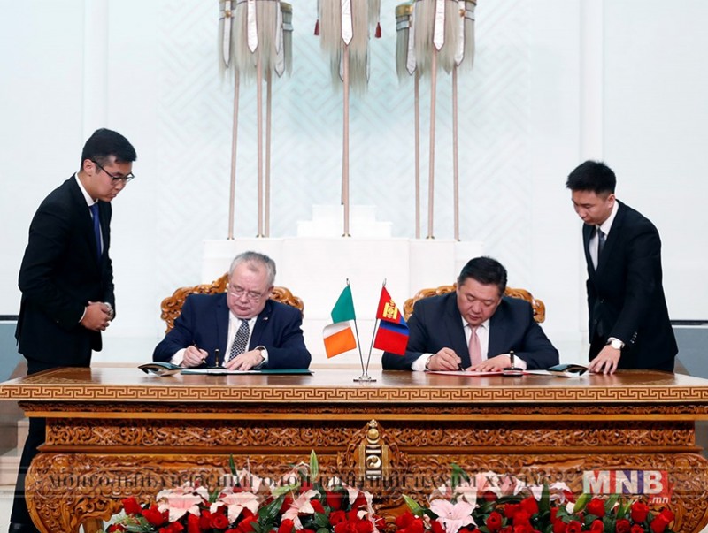 Монгол Улсын Их Хурлын дарга М.Энхболд, Ирланд Улсын Парламентын Доод танхимын дарга Шон О’Фарел нар өнөөдөр (2018.04.30) Монгол Улсын Их Хурал, Ирланд Улсын Ойрэактас (парламент)-ын Дайл Эйрэанн (Төлөөлөгчдийн танхим) хоорондын хамтын ажиллагааны санамж бичигт гарын үсэг зурав.