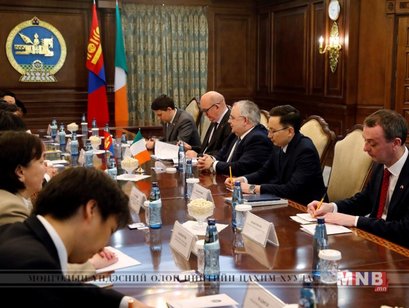 Бүгд Найрамдах Ирланд Улсын парламентын Доод танхимын дарга Шон О’Фарел, Монгол Улсын Их Хурлын дарга М.Энхболд нар албан ёсны хэлэлцээ хийв. Хэлэлцээний эхэнд УИХ-ын дарга М.Энхболд Хүндэт зочин, ноён Шон О’Фарелийг Монгол Улсад тавтай зочлохыг хүсээд, “Энэ жил Монгол Улс, Ирланд Улсын хооронд дипломат харилцаа тогтоосны 20 жилийн ой тохиож байна. Манай улс Европын Холбооны гишүүн, уламжлалт найрсаг харилцаатай Ирланд Улстай харилцаа, хамтын ажиллагаагаа бүхий л салбарт хөгжүүлэх эрмэлзэлтэй байдаг” гэв.