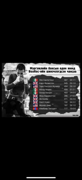 Мэргэжлийн боксын чансаа дахин шинэчлэгдэж, Монгол Улсын гавьяат тамирчин, олимп, ДАШТ-ий мөнгөн медальт Г.Төгсцогт шилдэг аравт багтжээ.