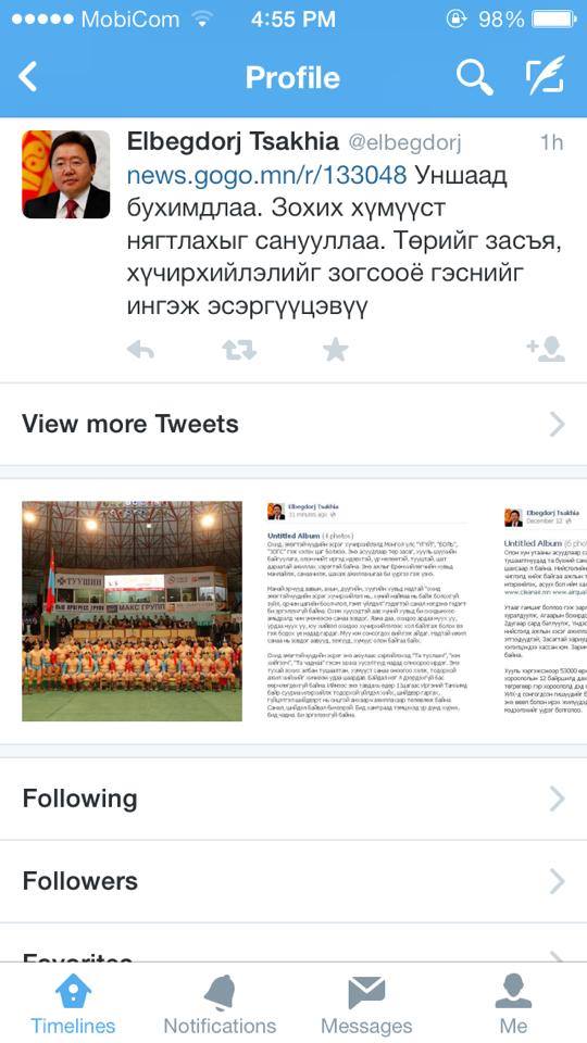Тэрбээр “Зохих хүмүүст нягтлахыг санууллаа. Төрийг засъя, хүчирхийлэлийг зогсооё гэснийг ингэж эсэргүүцэв үү” гэж твиттер хуудастаа бичжээ.
