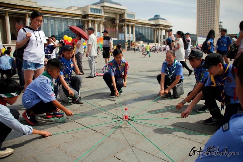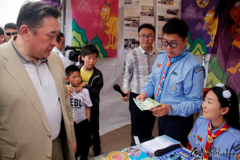 Энд тийм ч сонирхолтой байгаагүй тул буцаад талбай орлоо. Том тайзны тоглолт дуусч байгаа бололтой тэр хавьд бөөгнөрч байсан олон талбайруу яг л урсгал ус мэт аажуухан орцгоож таарав. Гэтэл хэсэг хар хувцастай ах нар хүмүүсийг нааш цааш болгон өнөөх баруун асруудруу явж байна. Сонирхоод дагаж очтол УИХ-ын дарга М.Энхболд баярын үйл ажиллагаатай танилцаж явна. Дагаж яваад Скаутын холбооны асарт очлоо. 6-11 насныханд зориулсан тусгай хөтөлбөрөө өөрийн “Эко зуслан”-даа зохион байгуулж байгаа гэнэ. М.Энхболд дарга “Эдний хөтөлбөр ч гоё шүү” гэж байхыг бодоход сонирхолтой байж таараа. Даан ч би чинь том болсон шүү дээ.