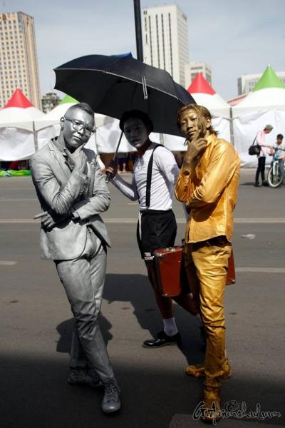 Зиа тэгээд ахиад л талбайгаар явав. Энд тэндгүй хүүхдийн тоглоом, ус ундаа зарсан хүмүүс. Үкүн, Баажи хоёр, Минионууд, Алт мөнгөн хүн хөшөө гэх мэт сонирхолтой багтай хүмүүс, гэр бүлүүдтэй хамт зураг авахуулж байна. Өнөөх гурван тайзан дээр янз бүрийн тоглолт, тэмцээн уралдаан болсоор.