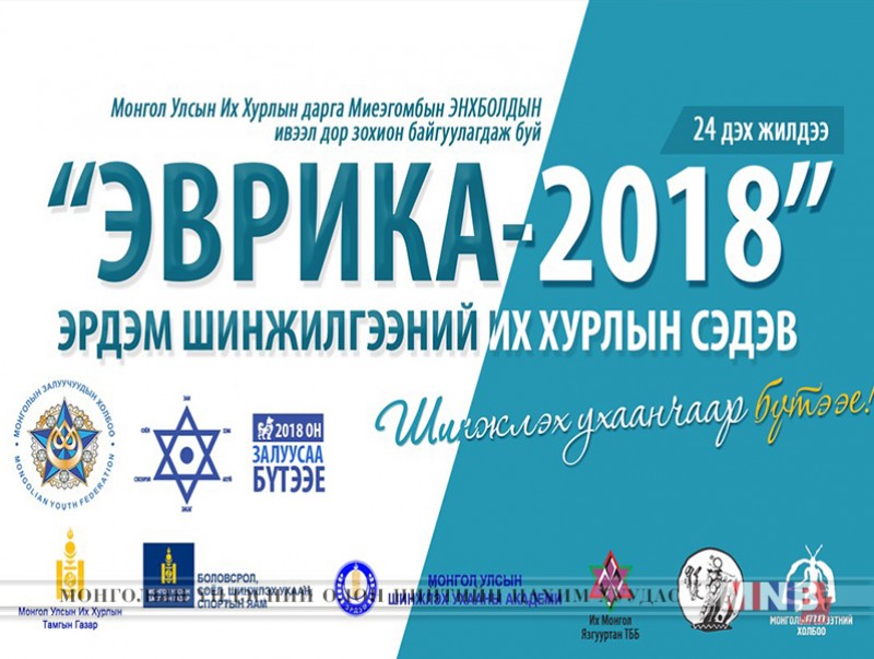 УИХ-ын даргын ивээл дор Монголын залуучуудын холбоо, УИХ-ын тамгын газар, БСШУСЯ-тай хамтран зохион байгуулж буй “Эврика-2018” эрдэм шинжилгээний их хурал ирэх есдүгээр сард болно.