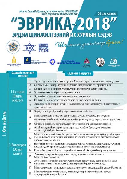 | “Эврика-2018” эрдэм шинжилгээний их хурал ирэх есдүгээр сард болно | ||