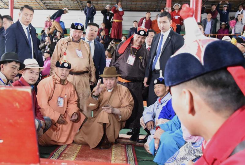 Үндэсний их баяр наадмын нээлтийн үйл ажиллагааны дараа уламжлал ёсоор Монгол Улсын Ерөнхийлөгч Х.Баттулга, Монгол Улсын Их Хурлын дарга М.Энхболд, Монгол Улсын Ерөнхий сайд У.Хүрэлсүх нар Үндэсний их баяр наадмын сурын харваа, шагайн харвааны асраар зочилж, тамирчдад амжилт хүслээ. Мөн Улсын Их Хурлын дарга М.Энхболд шагайн асарт зочлох үеэрээ есөн тохой зайнаас шагай харваж, наадамчин олондоо хүндэтгэл үзүүллээ.