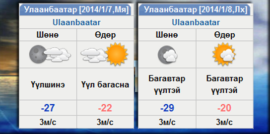 | Улаанбаатарт 14 хэм хүйтэн | ||
