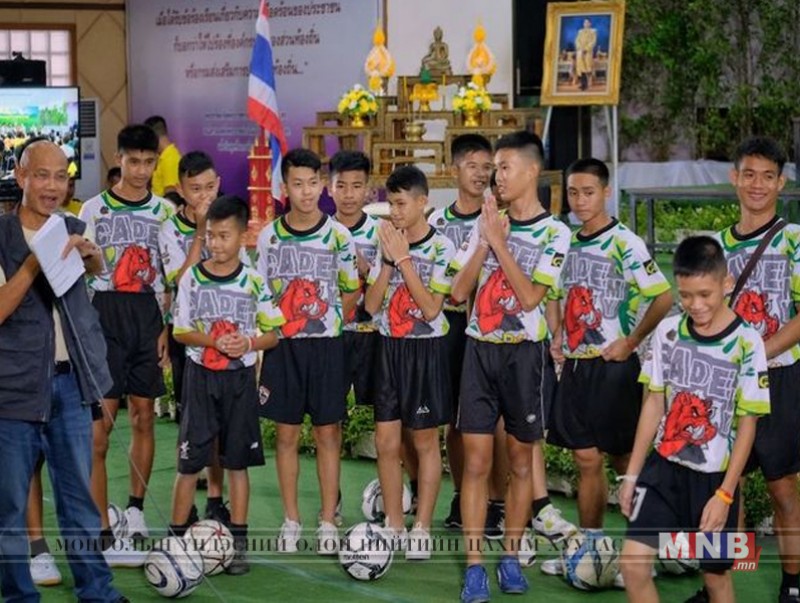 | Тайландын агуйд боогдсон байсан хүүхдүүд хэвлэлийнхэнтэй уулзжээ | ||