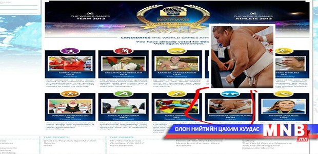 2013 оны дэлхийн шилдэг тамирчин шалгаруулах “Athlete Of the Year-2013” шалгаруулалт эхэлжээ. Шалгаруулалтад Монгол Улсын иргэн, сумо бөхийн тамирчин Ганхуягийн Наранбат нэр дэвшиж байгаа аж.