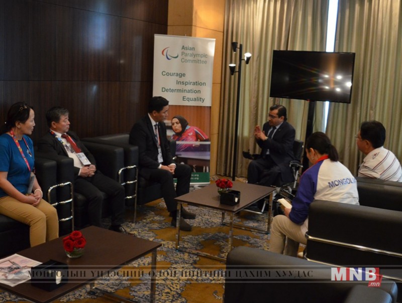 Уулзалтад УИХ-ын гишүүн Д.Ганболд, Монголын паралимпийн холбооны удирдлагууд оролцов. УИХ-ын гишүүн, НББСШУБХ-ны дарга Ё.Баатарбилэг тэргүүтэй төлөөлөгчид Бүгд Найрамдах Солонгос Улсын Соёл, спорт, аялал жуулчлалын дэд сайд Ро Тэкан, тус улсын паралимпийн хорооны ерөнхийлөгч Ли Мён Хо, Япон Улсын паралимпийн хорооны дэд ерөнхийлөгч Масаюки Мизуно, Азийн паралимпийн наадмыг зохион байгуулах хорооны дарга Ража Сапта, Октохари нартай уулзав.