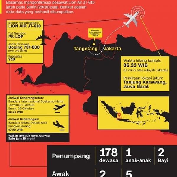 Өнөө өглөө Индонезийн нийслэл Жакарта хотоос 181 зорчигчтойгоор хөөрсөн “Lion air” компанийн “Boeing-737” агаарын хөлөг тун удалгүй холбоо тасарч, сураггүй болжээ. Тус онгоцод том хүн 178, гурван хүүхэд, нисэх онгоцны багийн 7 гишүүний бүрэлдэхүүнтэй нисч байжээ.