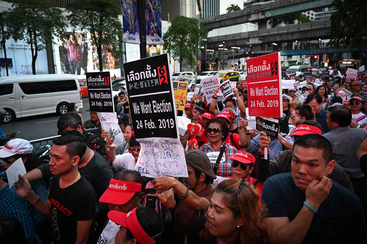Тэд засгийн газар сонгуулийн тов зарлахгүй хойшлуулсаар байгааг буруушааж байгаагаа илэрхийлж байлаа. Тайландын түр засгийн газар иргэний засаг захиргаанд засгийн эрхийг шилжүүлэн өгөхийн тулд сонгуулийг хойшлуулах боломжийг судалж байгаагаа өнгөрсөн 7 хоногт мэдэгдсэн юм. уг нь Бүх нийтийн сонгуулийг ирэх 2 р сард зохион байгуулахаар төлөвлөж байсан юм.