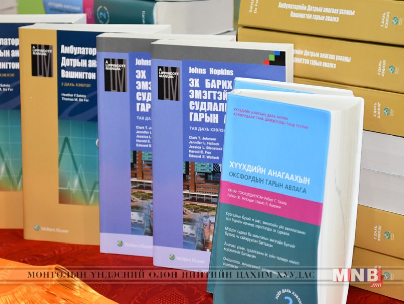 Эрүүл мэндийн салбарт АХБ-ны санхүүжилттэй хэрэгжиж буй эрүүл мэндийн салбар хөгжил хөтөлбөр -4, 4 нэмэлт төслийн хүрээнд анагаахын төгсөлтийн дараах үндсэн мэргэшлийн резидент эмч нарт зориулагдсан Амбулаторийн дотрын анагаах ухааны Вашингтон, Хүүхдийн анагаахын Оксфорд, Жонс Хопкинс эх, барих эмэгтэйчүүд судлалын номнуудыг англи хэлнээс орчуулан, хэвлүүлж тус бүр нь 500 ширхэг нийт 1500 номыг хүлээлгэн өгч байна.
