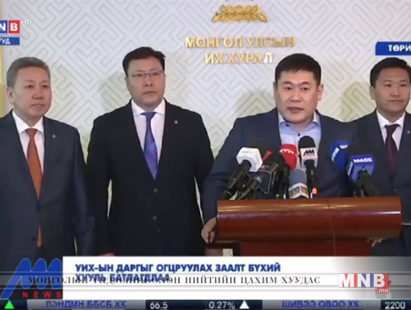 MNB Монголын мэдээ суваг үзүүлж байна: УИХ-ын даргыг огцруулах заалт бүхий хууль батлагдлаа.